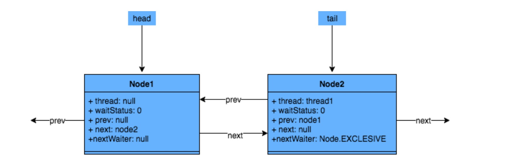 | nextWaiter | 指向下一个处于 CONDITION 状态的节点(由于本篇文章不讲述 ConditionQueue 队列,这个指针不多介绍) |