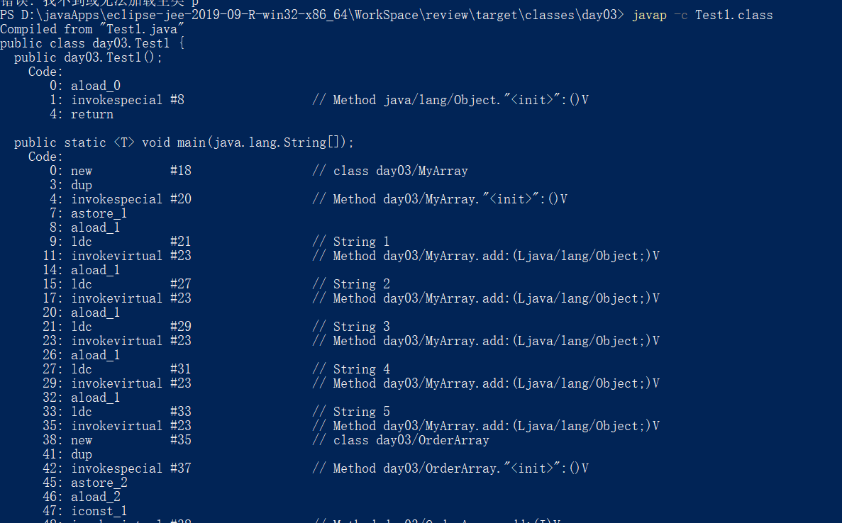 PS:javap -c指令可以对class文件进行反编译,生成如图文件,可以看出底层代码执行顺序,程序计数器中存放就是code列的值,通过值找到程序运行的位置