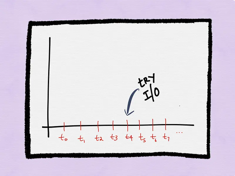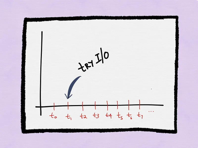 在t1时刻,进程再一次执行I/O,假设这次操作也阻塞并返回error。