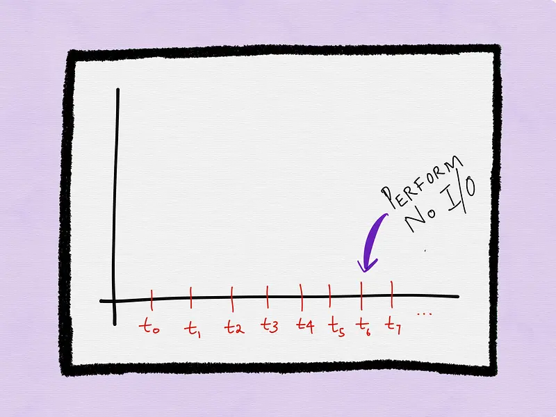 在t0时间,进程尝试使用非阻塞描述符进行I/O操作。如果I/O操作阻塞,系统调用返回error。