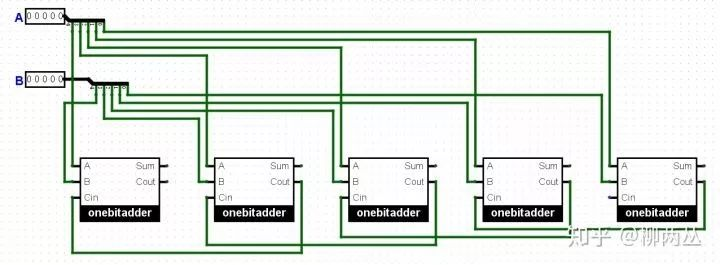 “哦哦哦我懂了,A和B就是两只手,最右边这个one-bit-adder计算的是最小位数的和! ”小明说道。