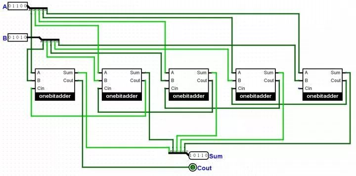 “再把或门都加上,搞定。这东西可以算出Sum了,接下来用一样的办法把C-out弄出来。”小明准备继续画。