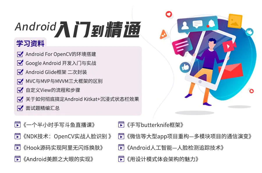 附赠14G的Android架构进阶、视频资料及程序员简历模板 点击我