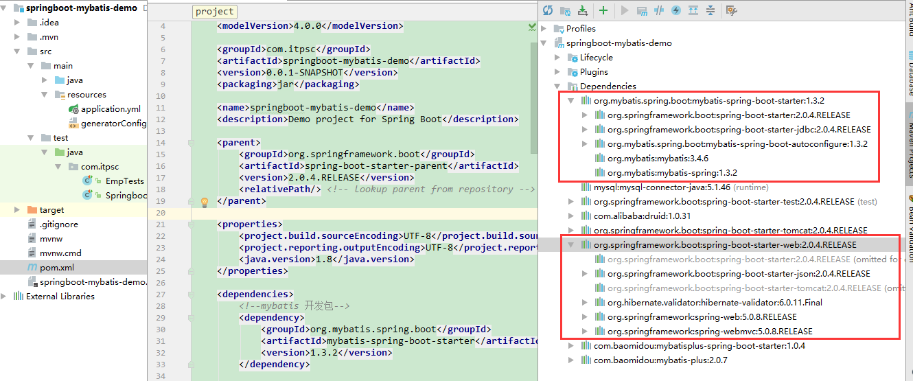 mybatis-spring-boot-starter帮我们引入了dao开发相关的jar包。