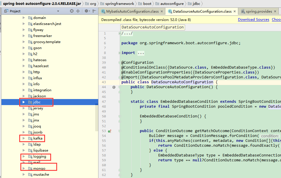以mybatis为例,在上面的截图中,我们发下mybatis-spring-boot-starter这个包帮我们引入了mybatis-spring-boot-autoconfigure这个包,如下图: