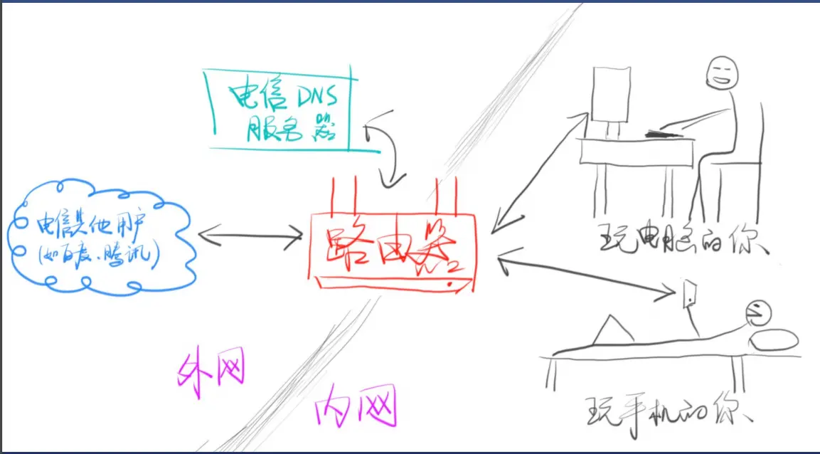 DNS,全称 Domain Name System(service),是一个域名系统,我们输入的网址并不能帮我们访问到应该去的服务器获取资源,因为我们没有该服务器的 ip 地址,所以就需要一个能帮我们找到该域名对应服务器 ip 的系统。