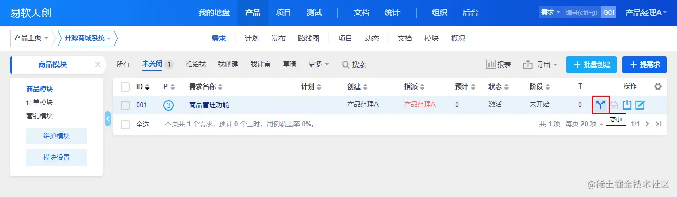 - 当然产品经理也可以对当前的需求进行变更操作,但是变更完的需求需要开发团队确认后才能进行后续开发;