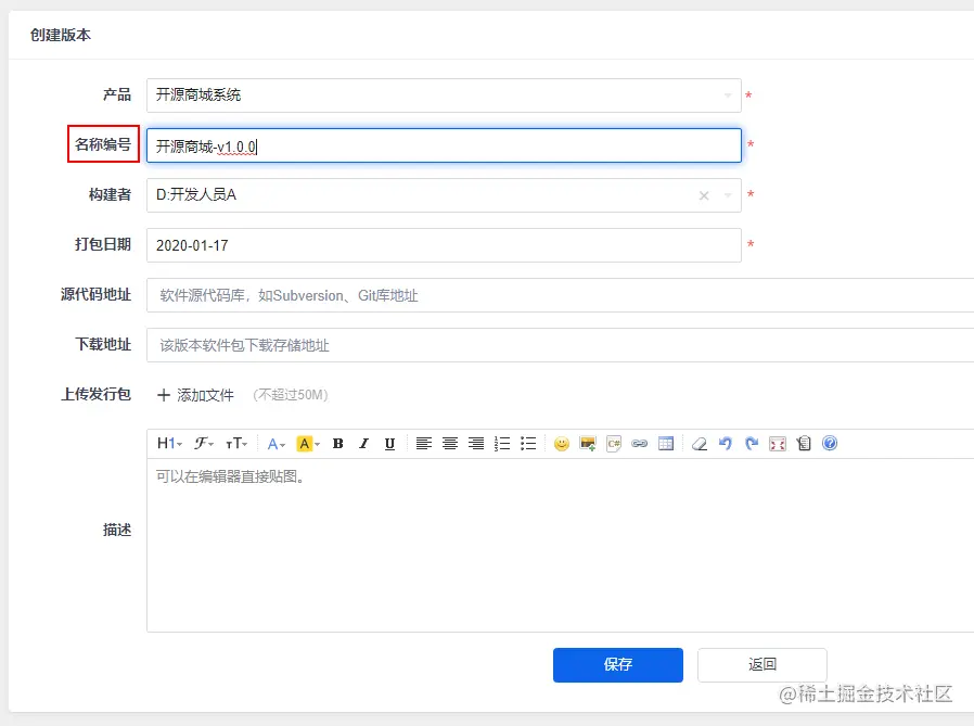 - 创建测试单需要完善版本、负责人、名称等信息: