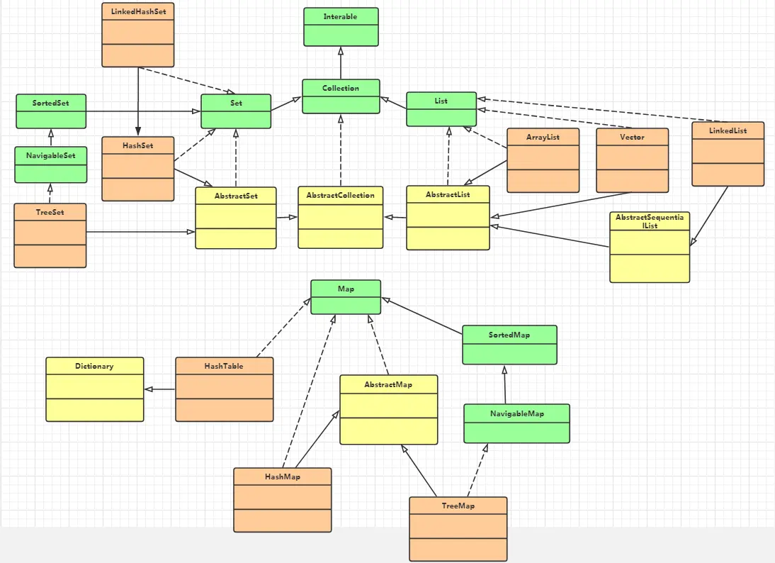 我们可以发现一个特点,上述所有的集合类,除了map系列的集合,即左边的集合都实现了Iterator接口