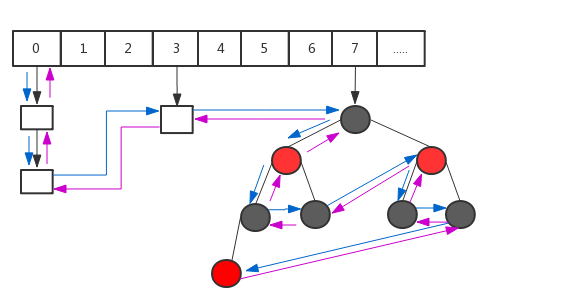 LinkedHashMap是HashMap的子类,它的大部分实现与HashMap相同,两者最大的区别在于,HashMap的对哈希表进行迭代时是无序的,而 LinkedHashMap对哈希表迭代是有序的,LinkedHashMap默认的规则是,迭代输出的结果保持和插入key-value pair的顺序一致(当然具体迭代规则可以修改)。LinkedHashMap除了像HashMap一样用数组、单链表和红黑树来组织数据外,还额外维护了一个 双向链表,每次向linkedHashMap插入键值对,除了将其插入到哈希表的对应位置之外,还要将其插入到双向循环链表的尾部。