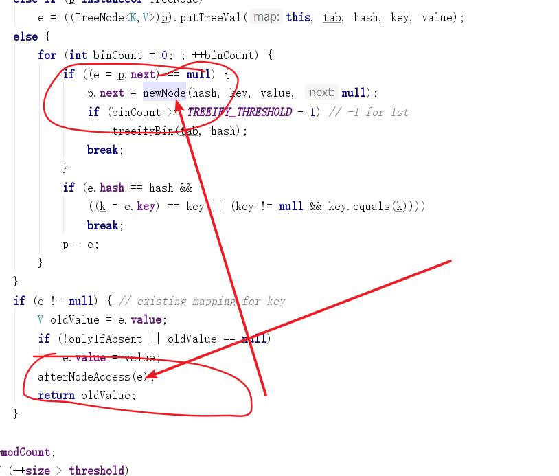 比如:LinkedHashMap并没有重写put方法,而put方法内部的newNode()方法重写了。LinkedHashMap调用父类的put方法,里面回调的是重写后的newNode(),从而达到目的!