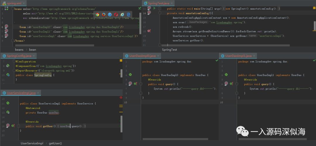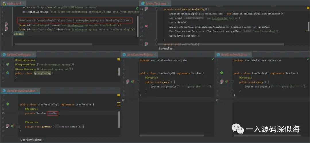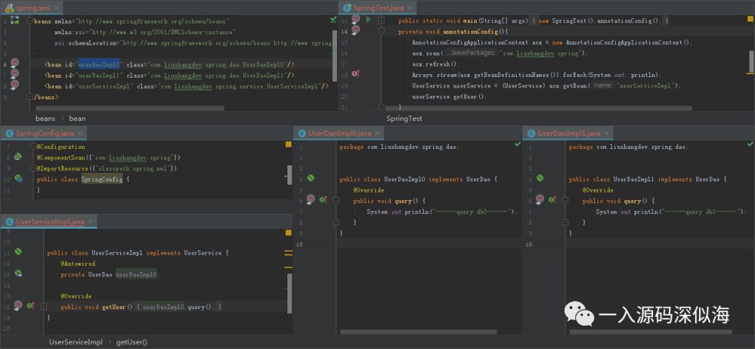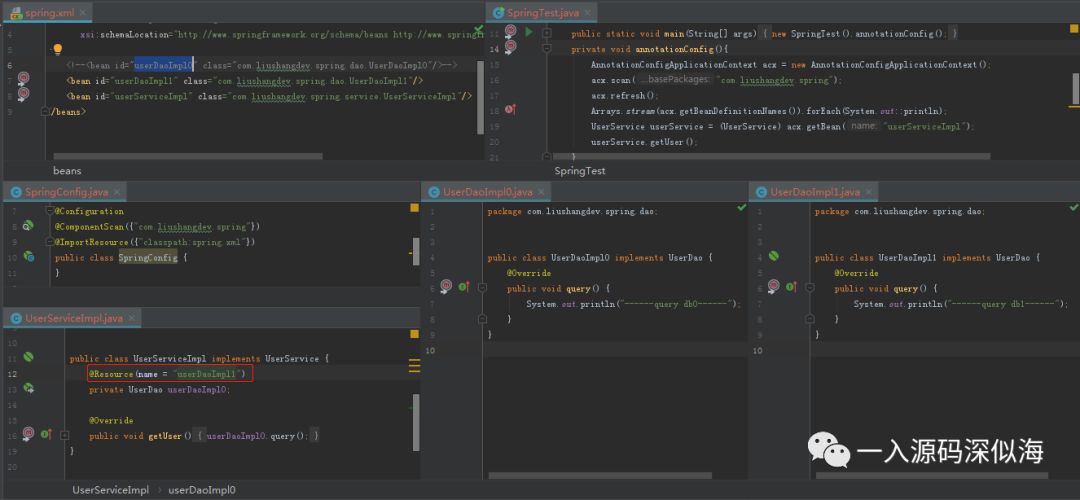 我使用了 userDaoImpl1 这个 Bean,那结果显而易见,肯定没有问题。