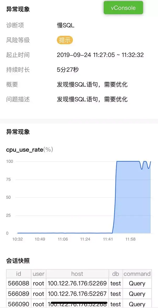 另外,这是在全程无人工干预的状况下生成的健康报告。利用“健康报告”中发现的问题和优化建议,可以在流量洪峰前对数据库进行优化。