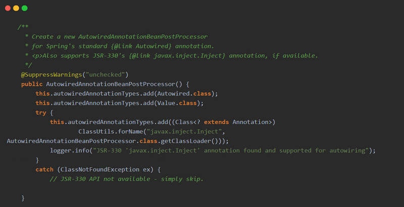 在Spring 的环境下,@Inject 和@Autowired 是相同的,因为它们的依赖注入都是使用AutowiredAnnotationBeanPostProcessor来处理的。
