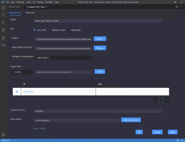 在 Deploy to Host 对话框设置部署参数,然后单击 Apply,即可保存。