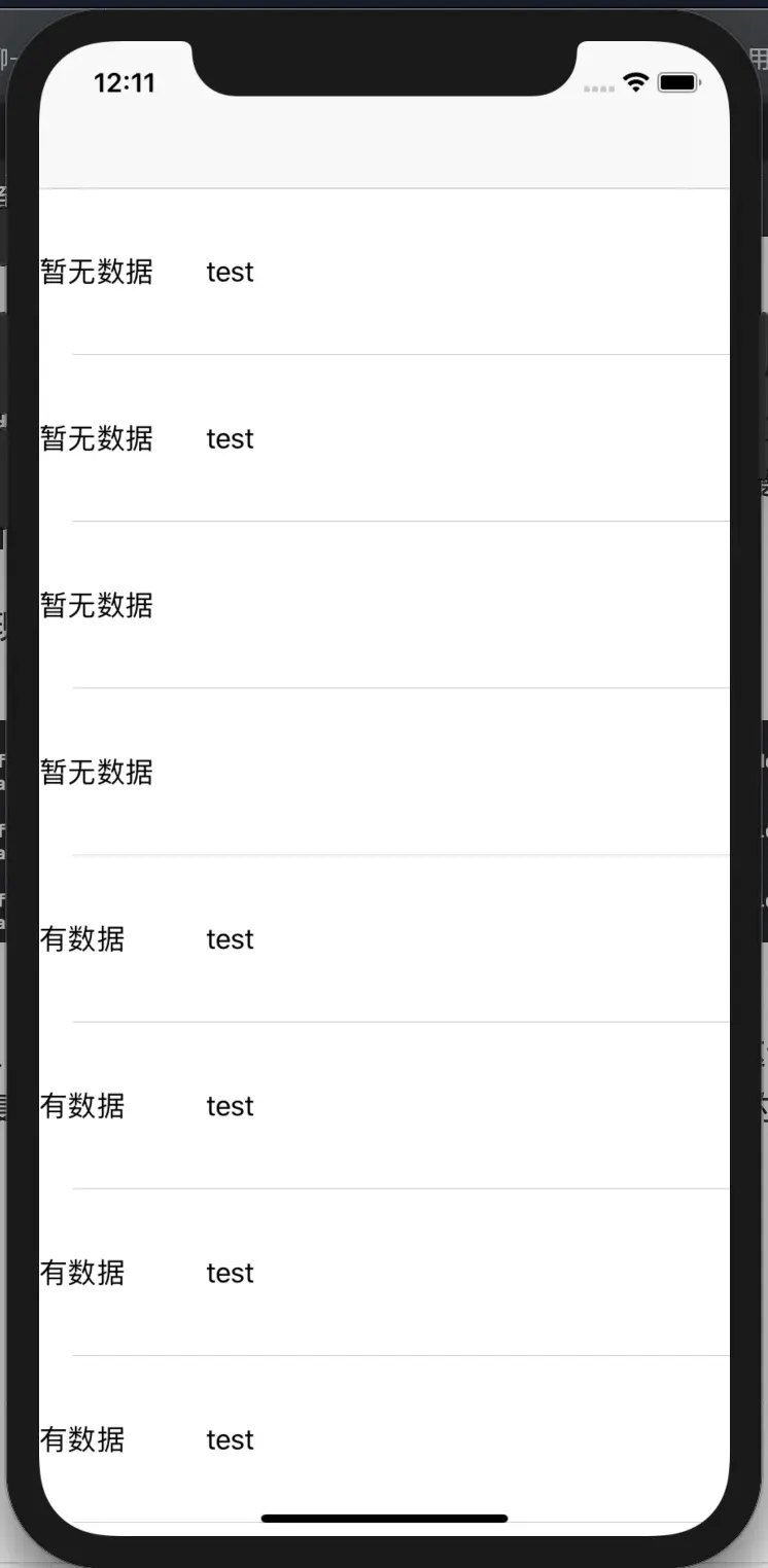 明明本来没有数据的,为什么又有了呢?关于这种情况出现的原因和解决方案,可以看这篇文章,也是最近发布的一篇,大意为复用的cell的内容设置不会更改,当我没有显式的指定某个控件的内容,再进行复用就容易出问题。本例中11、10地址的cell的右侧label值被设置为了test,而再复用到1、0中时由于代码并没有显式的给右侧label赋值(无数据),就出现了这种结果。那篇文章提供了几个解决方案及其优劣讨论,我想补充一点的就是cell无论处于哪种case都可以显式的给控件上一个值,这样就避免了这种问题的出现。
