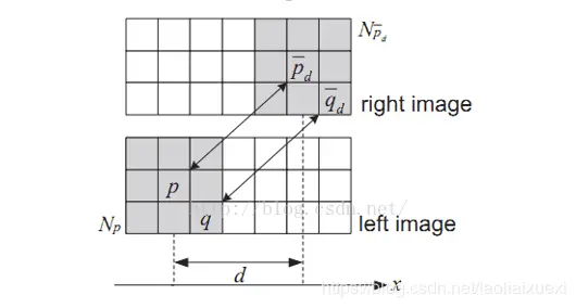 下面我写一下对于这个算法的理解: 我们要构造一个窗口D分别用于覆盖左边图像和右边图像,窗口的size大小可以自己去定义,然后用D窗口圈出了AB两幅图像后,我们需要左右窗口内的选定的像素做差,然后求取其绝对值,并且对绝对值求和。在视差范围内移动窗口 ,并重复作差,求取绝对值,并求和。找到最小的匹配块,并且标记记录下来