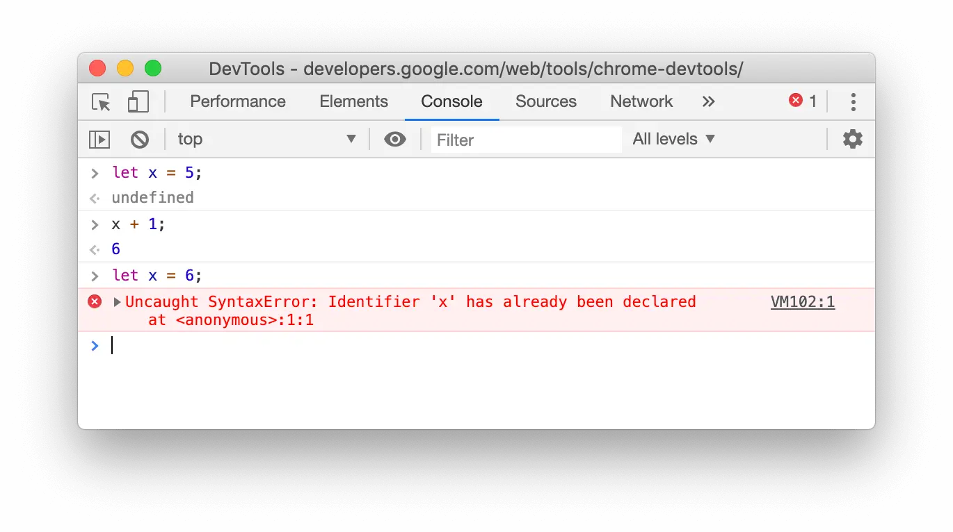 控制台现在支持 let 和 class 语句的重新声明,当我们在使用控制台调试 JavaScript 代码代码段时,对于已通过 let 或 class 声明的,无法再次声明是一个普遍的烦恼。