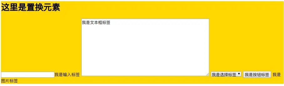 <input>、<textarea>、<select><option>、<button>、<img>