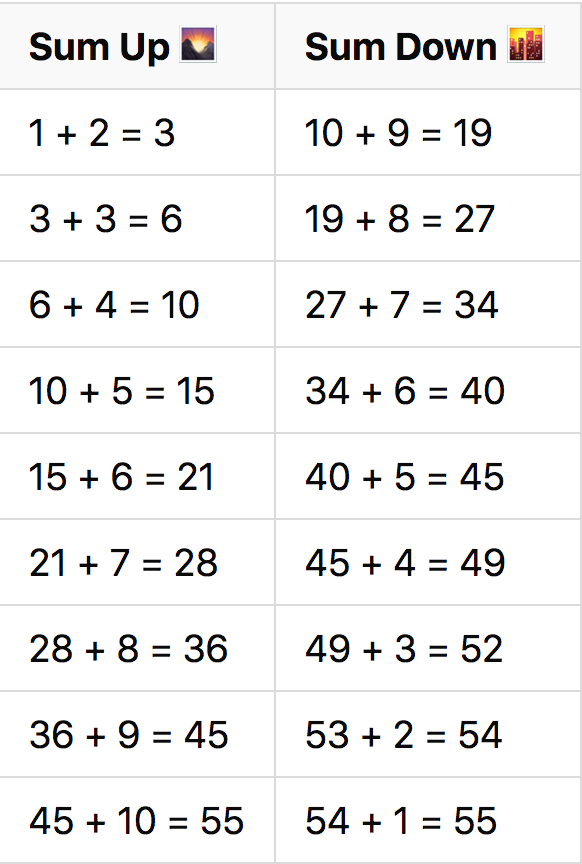 你不需要成为一个数学天才才能成为一个优秀的程序员,但是有一些技巧你可以添加到你的问题解决包中,以提高你的算法的性能,并在技术面试中给人留下深刻的印象。 在本教程中,您将学习如何用一个简单且容易记住的等式来求和一系列从 1 到 n 的连续整数。这个等式对于将一个函数从 O(n)重构为 O(1)的复杂度很有用.