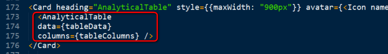 SAP UI5 Web Component的React表格控件用法 已注销 2020-02-12 115 阅读1分钟 从@ui5/webcomponents-react导入表格组件AnalyticalTable: 生成表格的抬头列标签数组和行数据数组: 使用AnalyticalTable标签页,将data和columns属性分别绑定到之前创建的数据数组和抬头数组: 最后效果如图: 要获取更多Jerry的原创文章,请关注公众号"汪子熙":