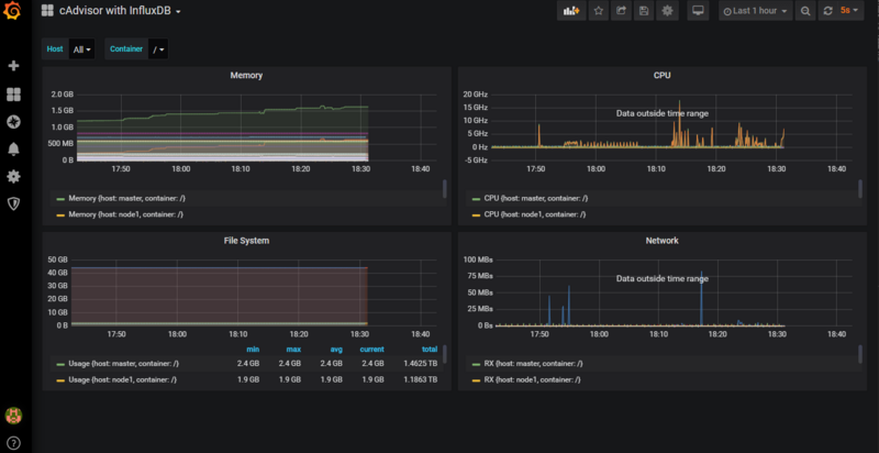 到目前为止,服务已经部署完成了,三台机器各自部署一个cadvisor,在master节点部署了grafana和influxdb