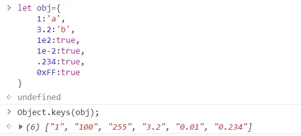 - 没加引号的键名按照标识符规则写。标识符是不能用数字开头的,还记得吗