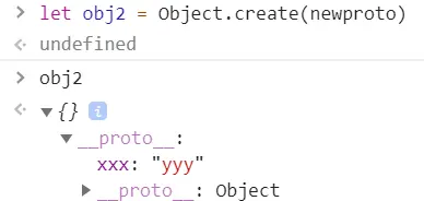 let obj2 = Object.create(newproto) //现在该对象没有啥自身属性,自己继续加呗