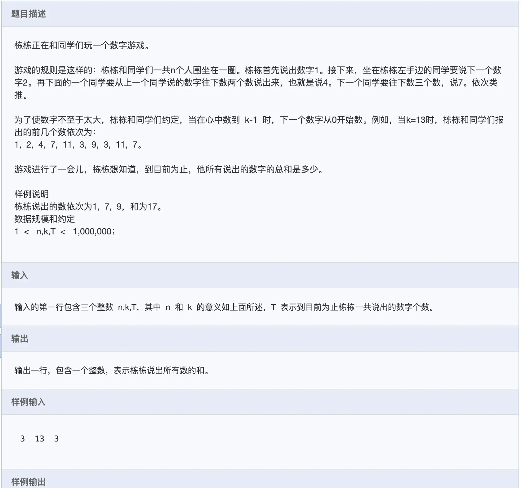 这题我做了半天也没看出来具体考的知识点是什么,综合运用也没发现具体运用什么。我自己是用for循环暴力算出来的,但是超限时80%多,看了下其他老哥的解析,他们用公式法可以正常通过。但是我有个问题就是,他们的算出来的规律都是拼出来的,看不人任何规律可言,比赛的时候感觉用等差公式去做的话有点迷哇。