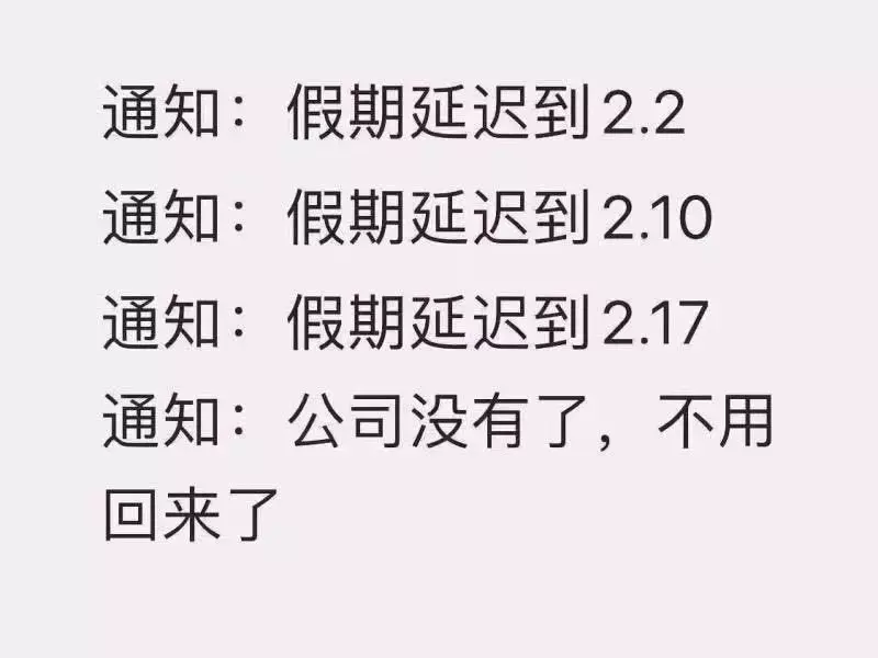企业这边,根据2月2号最新发布的《2020年春节企业复工情况调研报告》显示,41.7%的职场人所在企业计划在2月3号复工,18.9%的职场人所在企业复工时间竟延长到2月10号......甚至有的企业直接复工时间待定,开始远程工作的形式,在家上班。连上班时间都遥遥无期。
