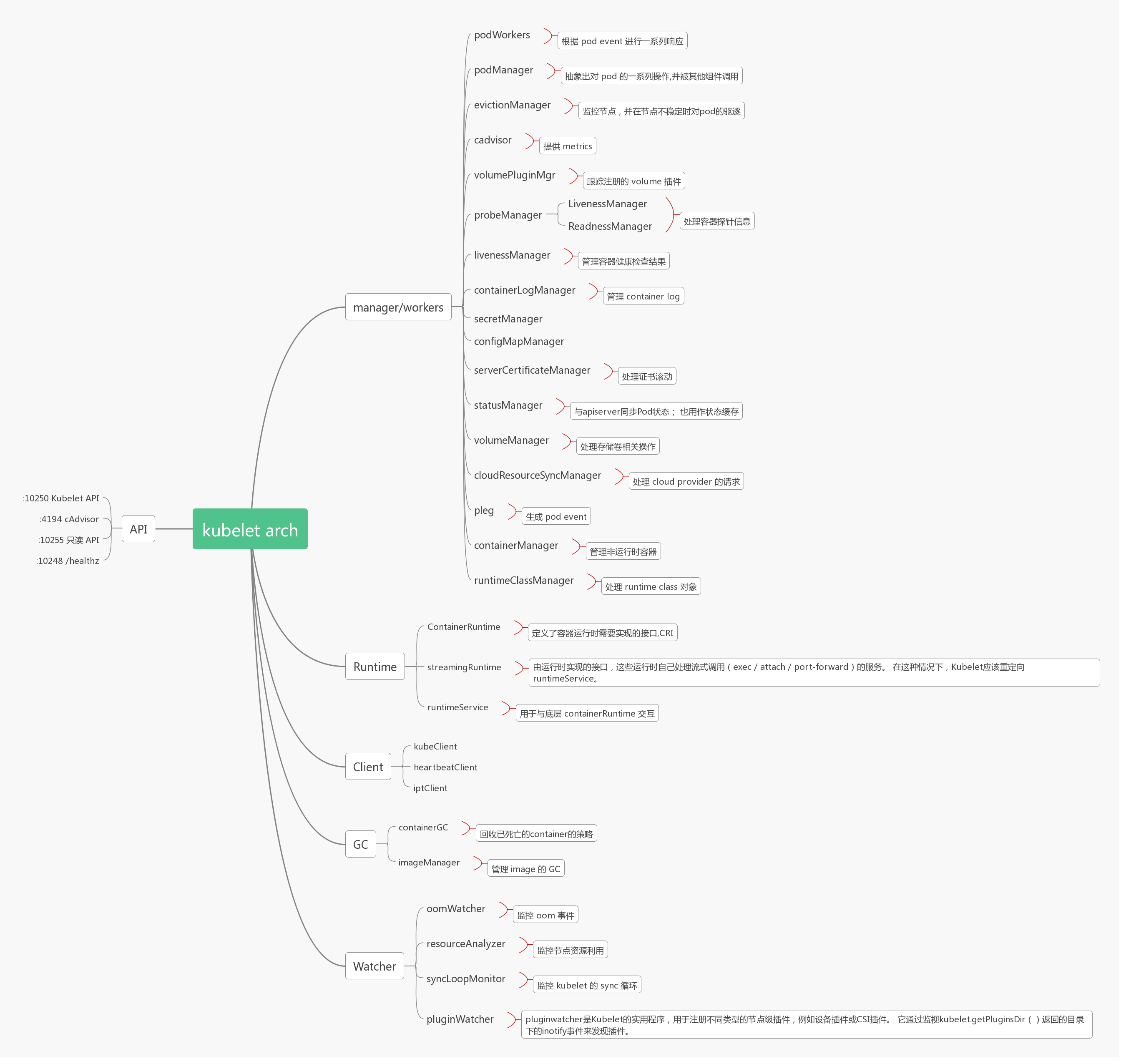 若想解读 Kubelet 源码,首先我们需要了解 Kubelet 的主要架构及组件。