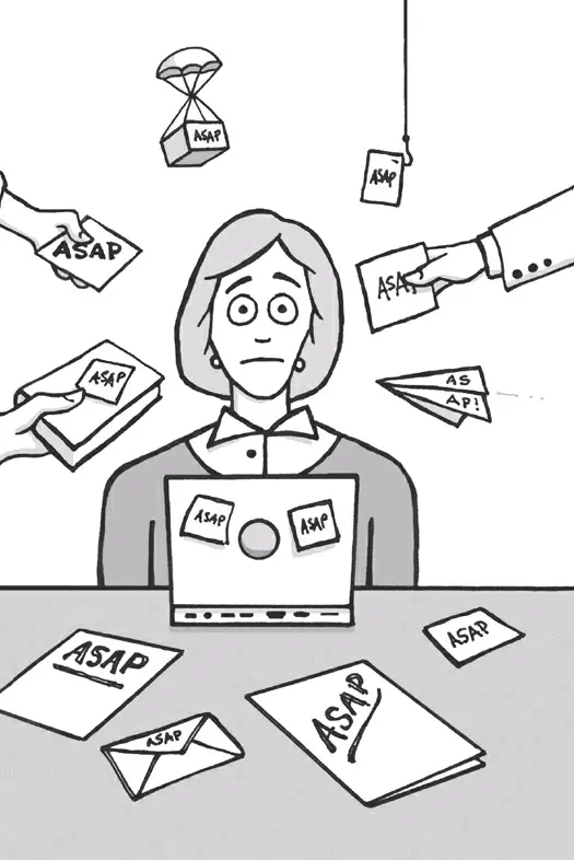 但是,一旦你摆脱了ASAP的困扰,你会惊讶在面对不断的面对面干扰时,你以前是如何完成事情的。摆脱狂热几乎就像禅一样, 当另一方准备协助时,让答案返回给你. 保持冷静,提高工作效率。