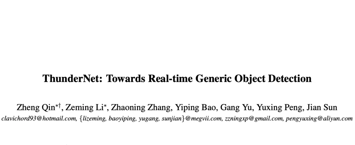 论文: ThunderNet: Towards Real-time Generic Object Detection