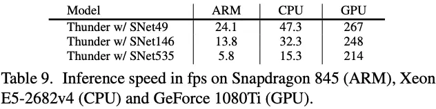论文对比了不同设备上的不同网络的推理速度,Yhunder with SNet49在ARM和CPU上都能达到实时性,而所有的网络在GPU上都大于200fps,速度相当劲爆