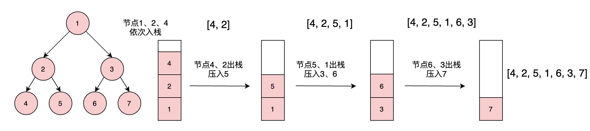 // 左节点都先压入栈