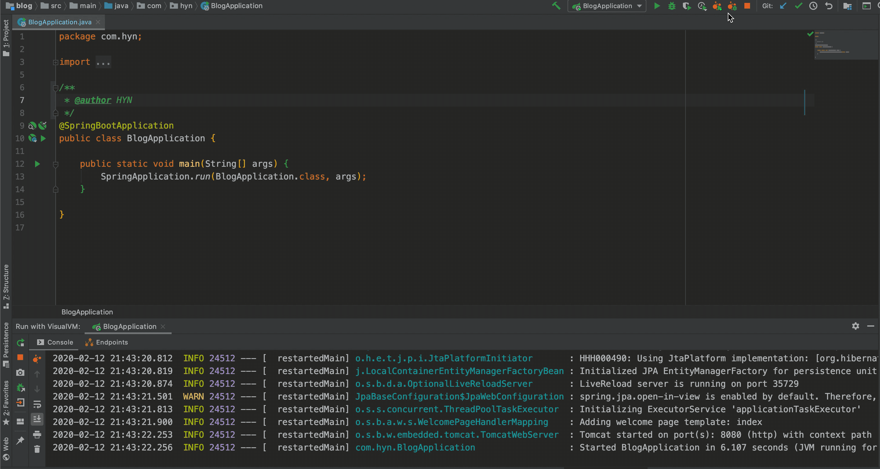 Java VisualVM 是 JDK 自带的图形化 JVM 分析工具,是进行 JVM 分析和调优的必备工具。在安装有 JDK 环境的设备上,在命令行输入jvisualvm命令就可以打开 Java VisualVM。如果你的 IDEA 安装了 VisualVM Launcher,右上方会新增几个按钮,直接点击就可以打开 Java VisualVM,十分方便。