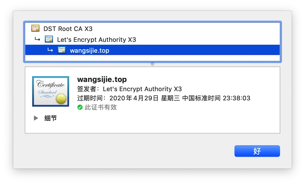 这里推荐 Let’s Encrypt 机构,然后使用 acme.sh 从 letsencrypt 生成免费的证书,且可以生成泛域名证书。