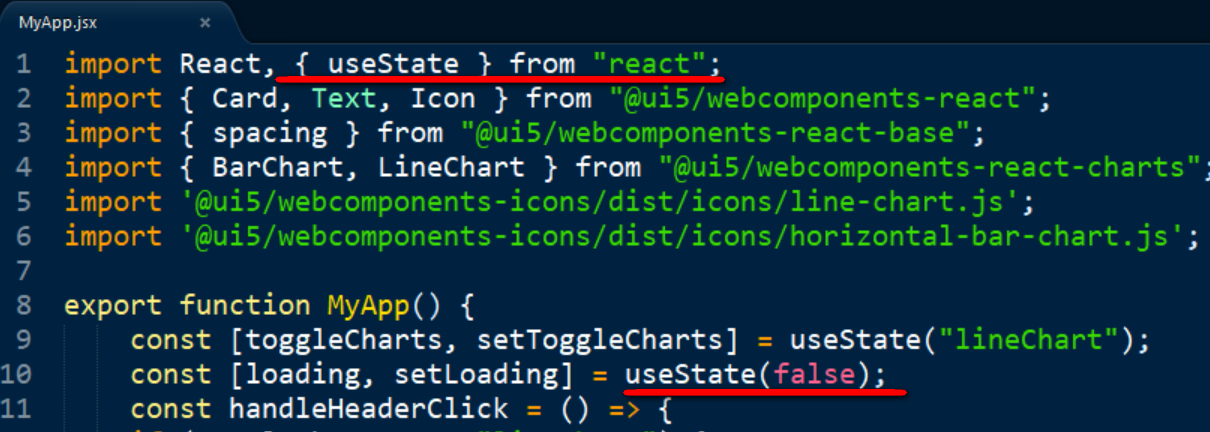 假设我使用SAP UI5 Web Component的React控件, 比如柱状图和折线图:
