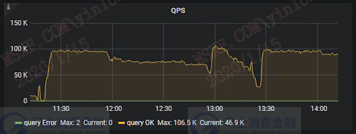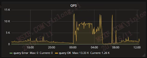 账务 TiDB 集群每天业务高峰期将会承载约 1.3 万 QPS 的请求量(如下图所示),在做活动期间,请求量能冲击到近 3 万 QPS。