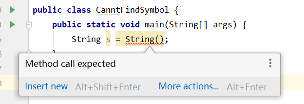 有点经验的 Java 程序员应该能够发现上面这段代码中的错误,它缺少了一个 new 关键字。因此,这段代码在编译阶段是不会通过的。