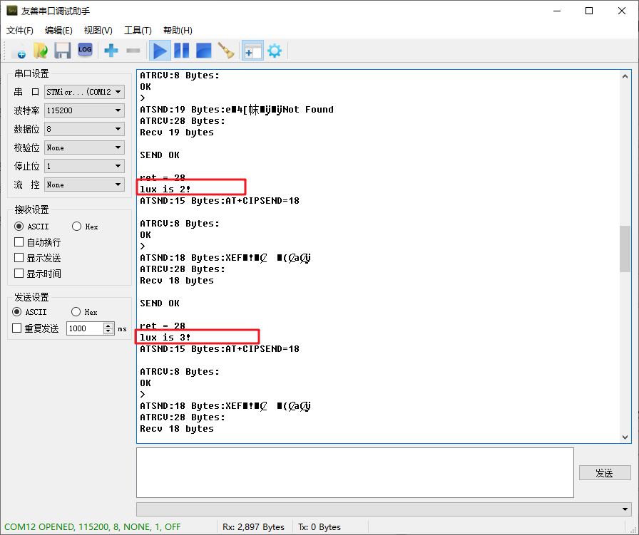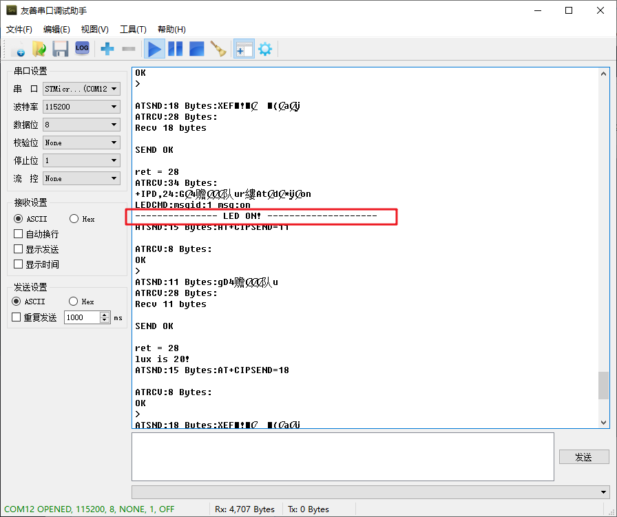 在串口助手中可以看到: