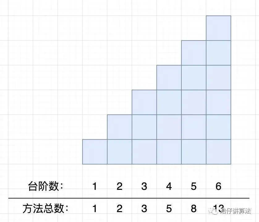 - 上 3 阶台阶:到达第3阶的方法总数就是到第1阶和第2阶的方法数之和。