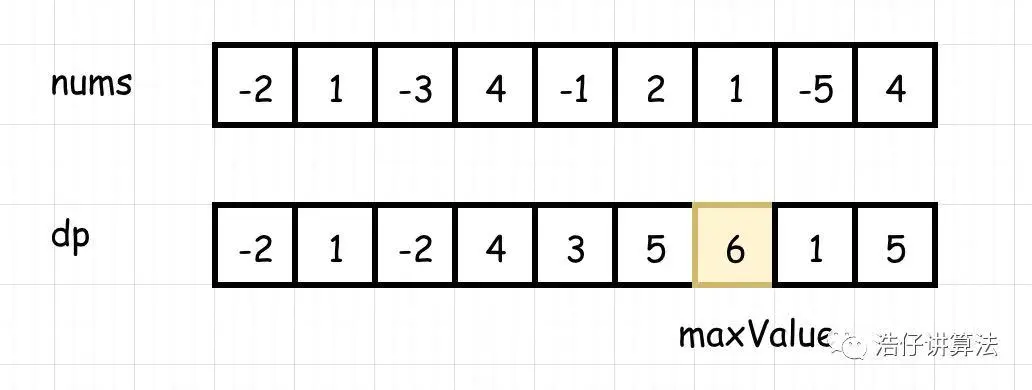 dp[i]:表示以 nums[i] 结尾的连续子数组的最大和。