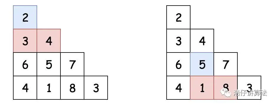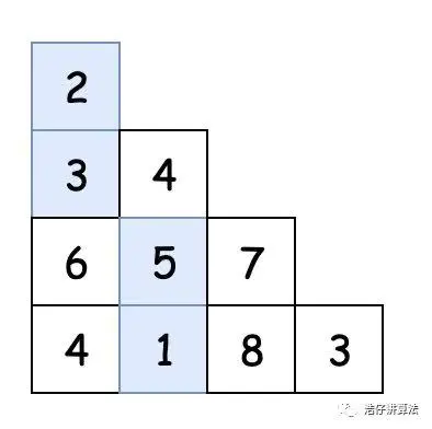 最右边的元素只能从自己左上角而来。(2-4-7-3)