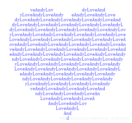 print('\n'.join([''.join([('AndyLove'[(x-y)%8]if((x*0.05)**2+(y*0.1)**2-1)**3-(x*0.05)**2*(y*0.1)**3<=0 else' ')for x in range(-30,30)])for y in range(15,-15,-1)]))