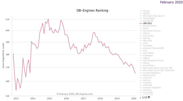 DB2 是『昨日贵族』,曾经最受金融行业青睐的数据库产品,急转直下:(*点击图片查看大图)