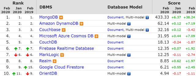 2月份数据库流行度排行已经出炉!前10名延续了上个月波澜不惊的格局,波动极小,波动分值都在7分以下。