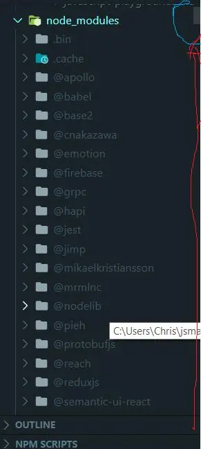 当你在寻找一个特定的文件时,必须一直使用文件资源管理器,这很容易让人沮丧。当要分析node_modules目录中的文件时,这将成为一个巨大的问题,因为VSCode会执行以下操作: