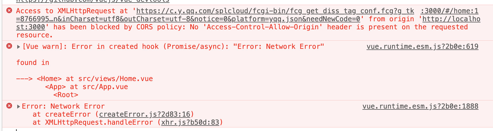 此时会出现跨域问题: