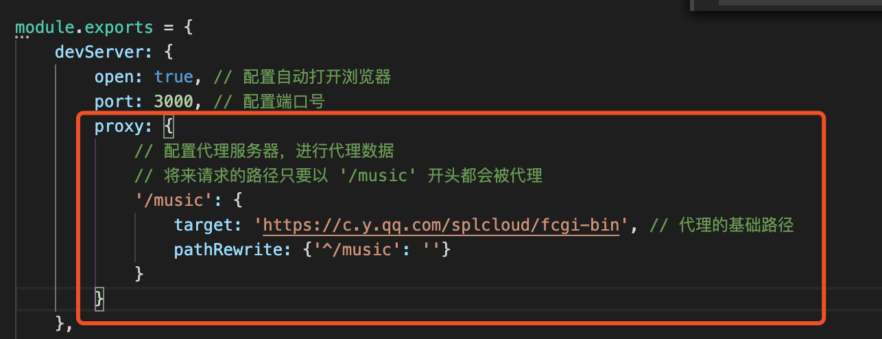 // 将来请求的路径只要以 '/music' 开头都会被代理
